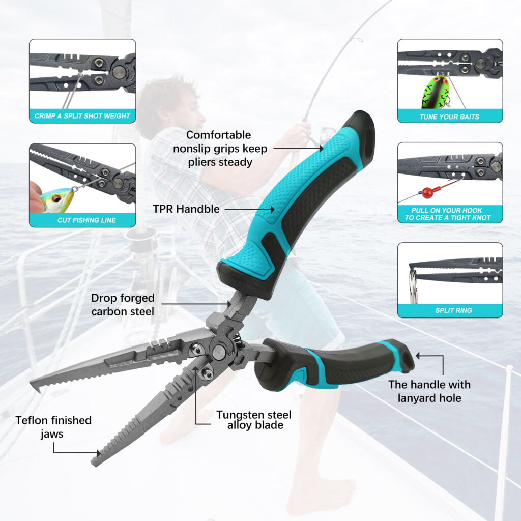 • With functions of braided line cutters, crimping leads and sleeves , split ring and remove hook , hook hole for tighten knot, lure turning tool