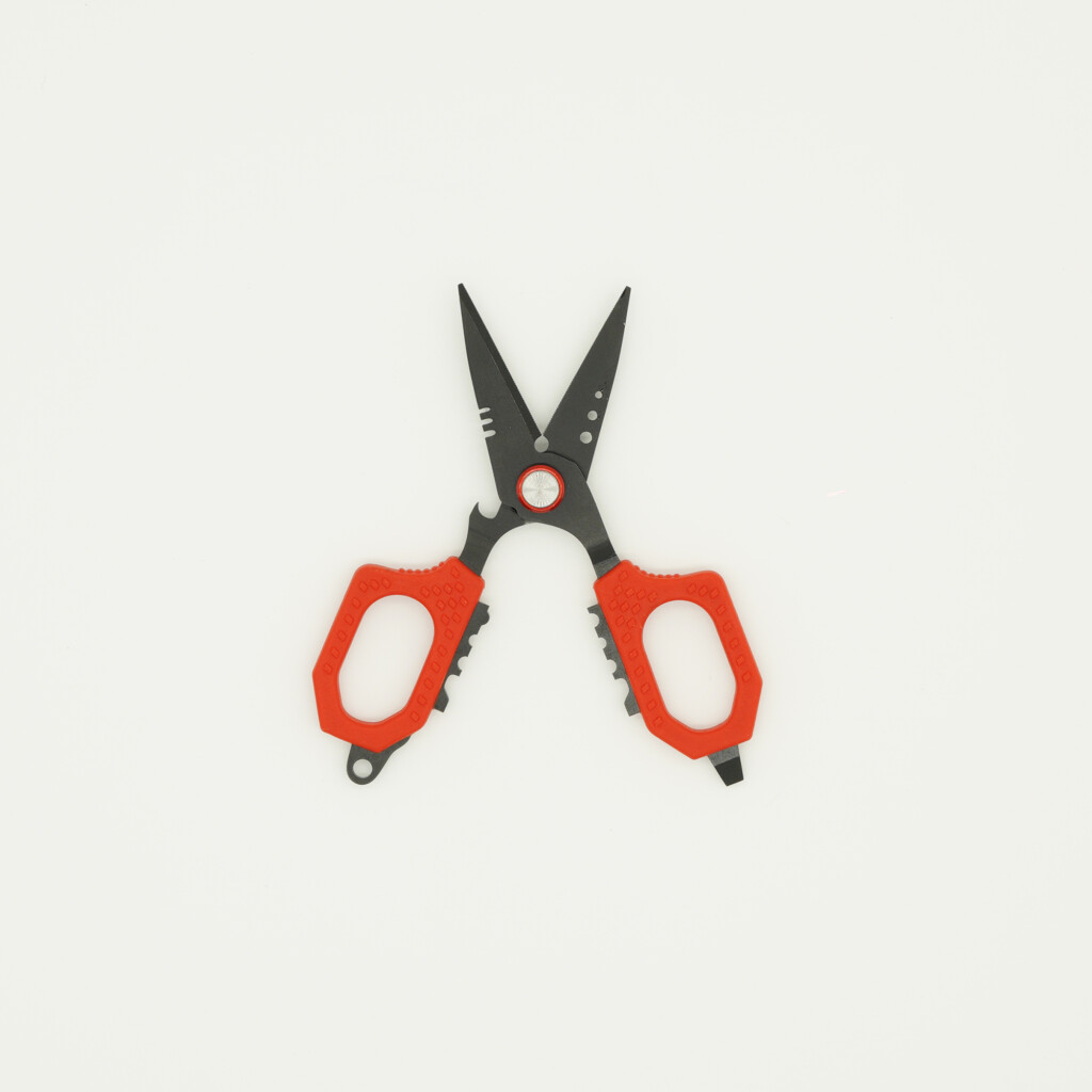 Iconic non-slip grip handles,split-shot crimp tool,bottle opener,hook hole for tighten knot,with lanyard hole,lure turning tool,screw driver,and a cutting notch for cutting fishing bait and other meats